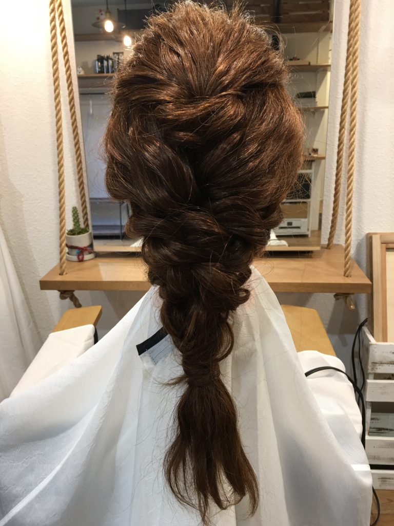 編み込みとくるりんぱ、三つ編みでまとめました!