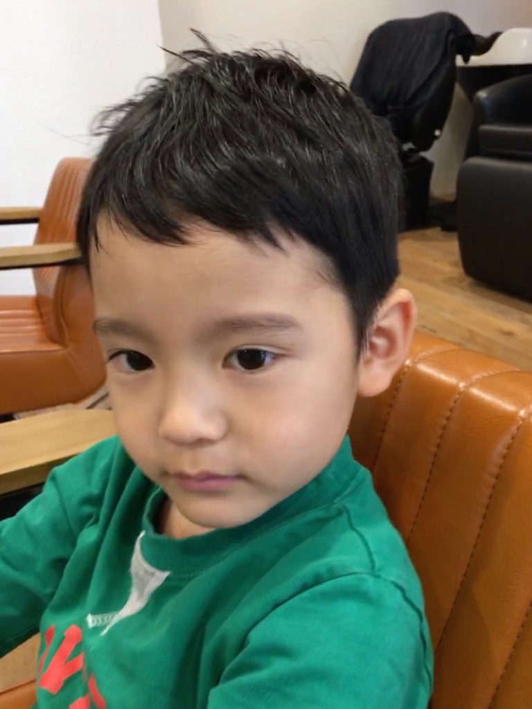 息子さんは美容室での初カット!